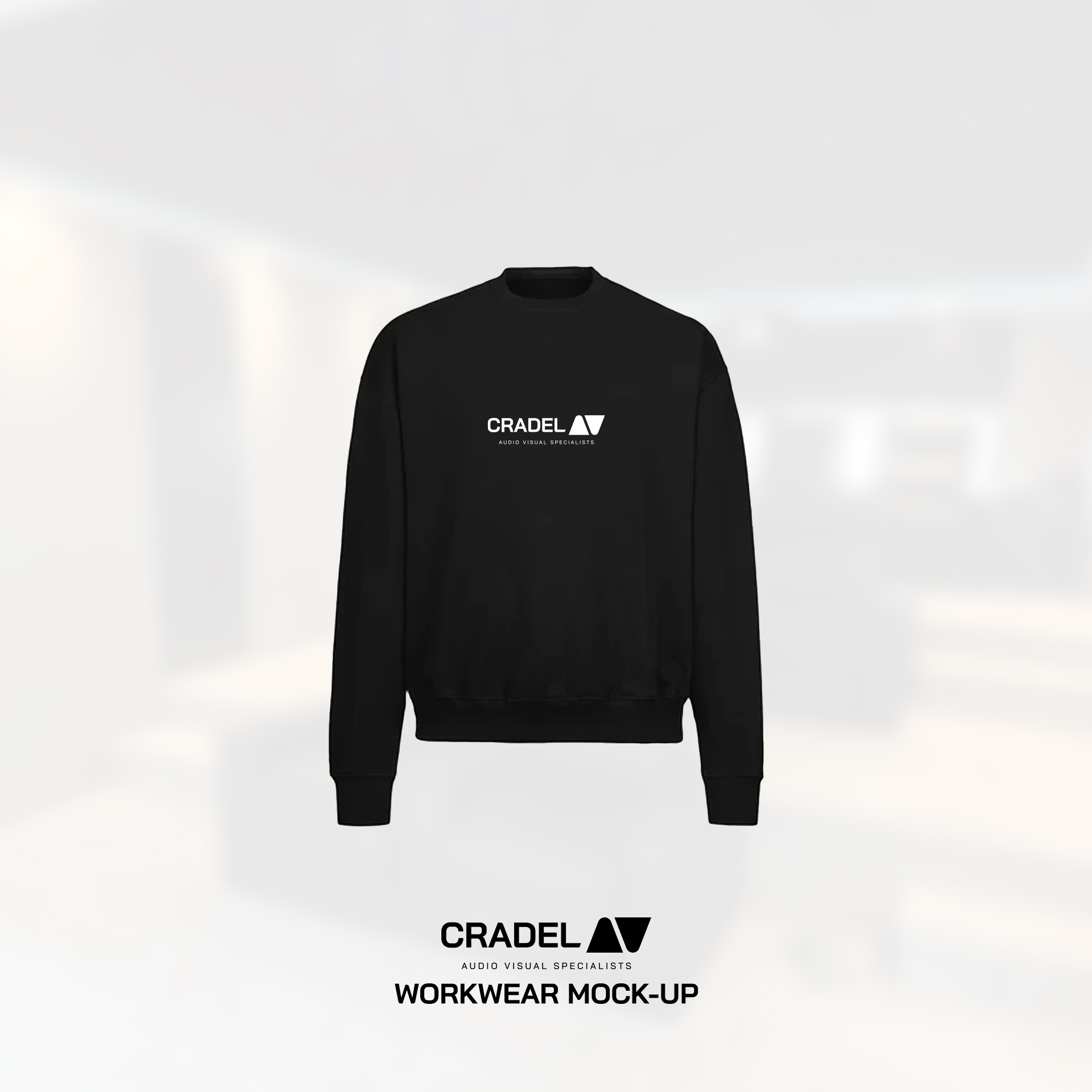 The workwear uses a restrained colour palette and minimal logo placement to ensure the brand feels professional and confident without being overbearing. The Cradel wordmark and AV symbol are applied with clarity and consistency, maintaining legibility while reinforcing brand recognition in real-world environments.