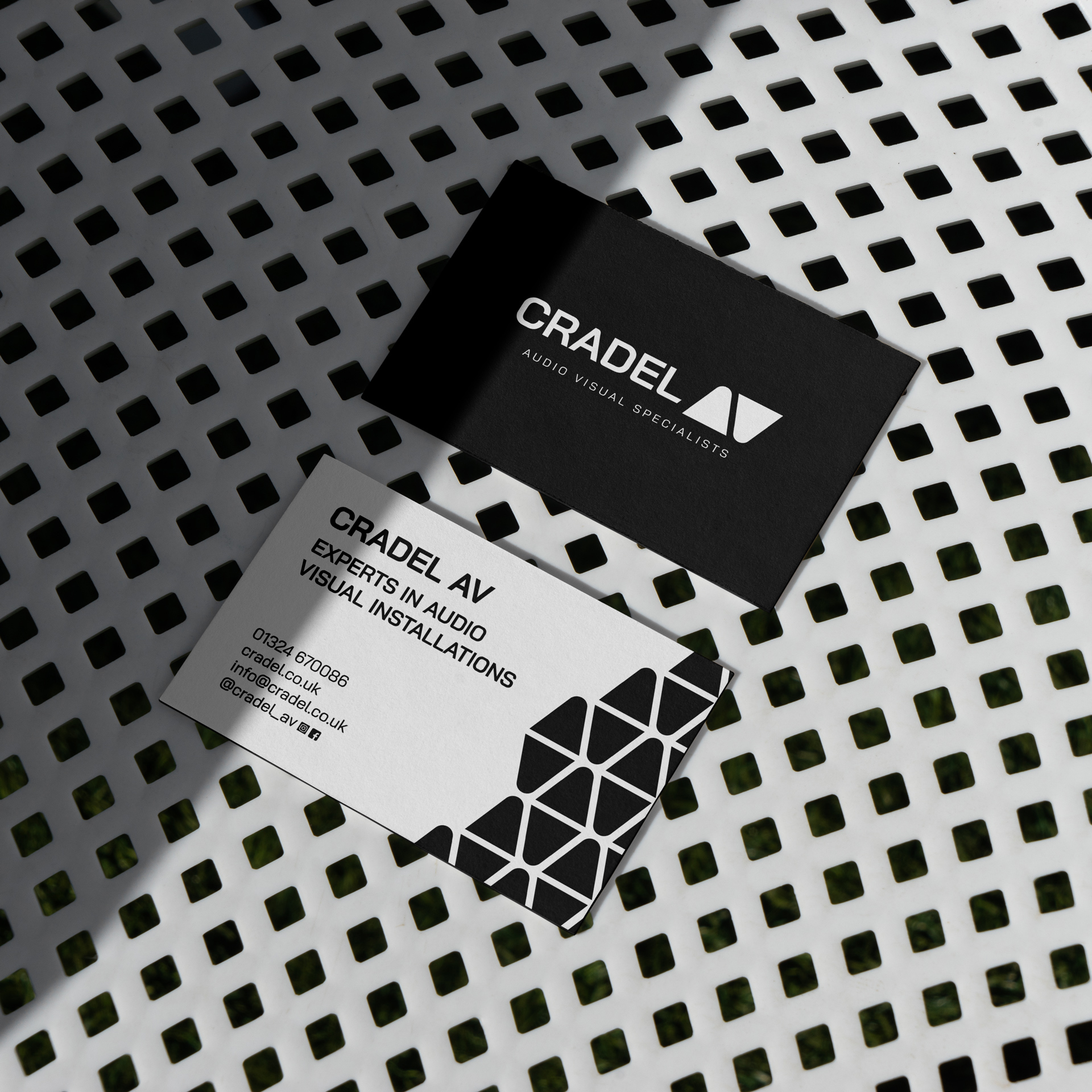 Alongside the Cradel wordmark, we developed a distinctive logo symbol built around the combined forms of “A” and “V”, referencing audio visual. This structure allowed the mark to immediately connect with the core of the business while remaining abstract enough to feel confident and contemporary.